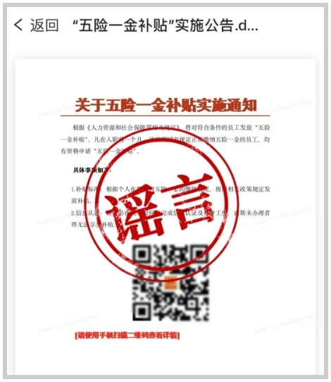 扫码领“五险一金补贴”?当心,是诈骗!