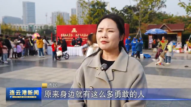 10月26日下午,《江苏省奖励和保护见义勇为人员条例》实施30周年暨连云港市见义勇为基金会成立30周年宣传日活动,在海州区苍梧绿园广场举行,吸引了大批市民前来参与。市委常委、政法委书记宋波,副市长、公安局局长房庆忠参加活动。【解说词】活动以“崇尚见义勇为 正义在我身边”为主题,通过音诗画《勇敢的心》、向今年以来事迹突出的见义勇为人员颁奖、“见义勇为号”公交车授牌首发等环节,集中展示了港城三十年来见义勇为事业的发展历程与感人瞬间。在宣传展区,一张张照片、一段段视频,记录着2368名港城英雄的身影。市民纷纷驻足,认真聆听他们的故事。