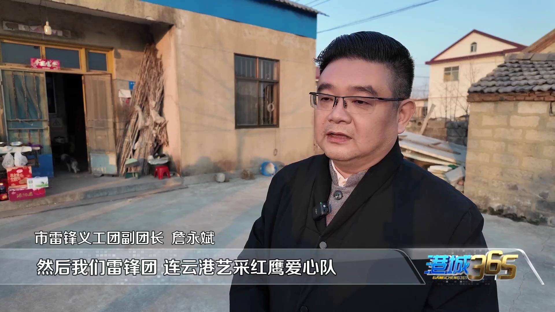 市雷锋义工团副团长 詹永斌:过年了,其实他们比普通人更不容易,然后我们雷锋团、连云港艺采红鹰爱心队,还有咱们365的志愿者,咱们筹集了一些物资,给他们能安安稳稳地过一个祥和的新年。这样子对他们来说也是一种非常大的帮助。