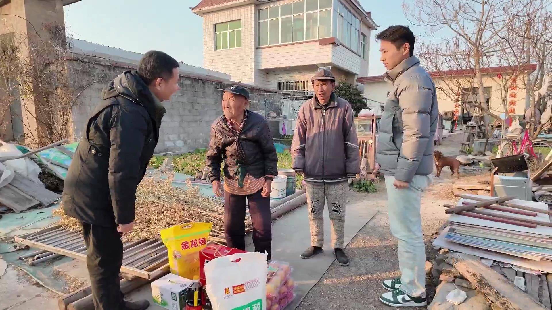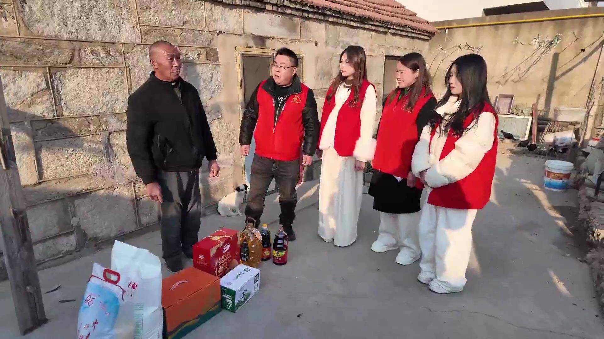志愿者们首先来到了65岁的五保户徐传绕家中,给他送来了米、面、油、牛奶、水果等慰问品,为他送来新年祝福。
