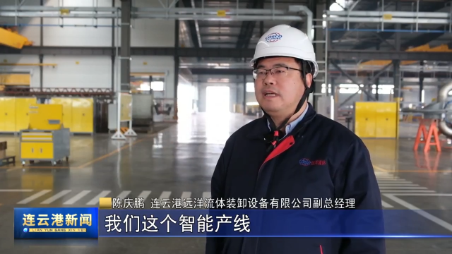 陈庆鹏 连云港远洋流体装卸设备有限公司副总经理:我们这个智能产线有一些很有特色的地方,产线中的智能下料系统能够让钢板排版作业效率大幅提升,材料的利用率较以前的 85% 提升到现在的 95% 以上。新应用的喷涂产线的效率比以前提高了 5 倍,喷涂作业的良品率提升至98%。我们以往的产能一年也就2个亿左右,今年目标要实现 4 到 5 个亿的产值,从而为连云港当地贡献更多的税收,从而实现企业的社会责任。