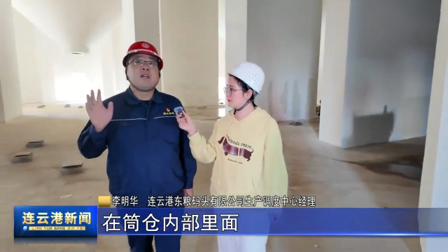 李明华 连云港东粮码头有限公司生产调度中心经理:我们的巡检系统可以实现智慧巡检,另外,装车的火车我们是智能化装火车,还有是无人化的侧壁装车。在筒仓内部里面,我们还可以看到很多基于数字孪生系统,我们建成的叫智能排载系统,把传统的人工分配进仓模式变为由系统给它精密计算,以一种最优质、最节能的进仓方式进仓,降低公司的成本。