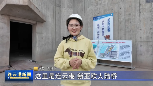 记者 孔维源:这里是连云港--新亚欧大陆桥的“东方起点”,一座“海上粮仓”正在这里拔地而起。今天,我就带您来感受一下这座千万吨级“海上粮仓”--连云港国际粮食集散中心一期工程项目现场的震撼。