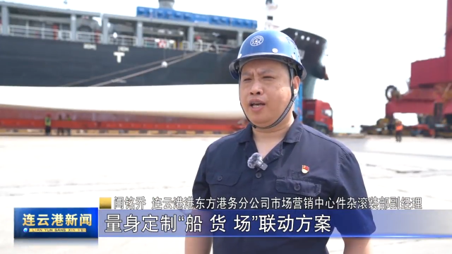 闫铭乔 连云港港东方港务分公司市场营销中心件杂滚装部副经理:我们提前与口岸单位建立协同机制,量身定制“船--货--场”联动方案,提前预留专用堆场并实施动态监控,实现货物到港后无缝衔接,大幅提升装船效率,减少船舶在港时间,助力共建绿色丝绸之路,推动中国智造与“一带一路”合作伙伴的发展迈向新高度。