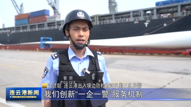 沈贤聪 连云港出入境边防检查站执勤三队民警:针对风电设备体积大、吊装难、登轮作业人员多等特点,我们创新“一企一警”服务机制,实行24小时智能查验和“货物直装”模式,将船舶通关时间缩短40%以上。