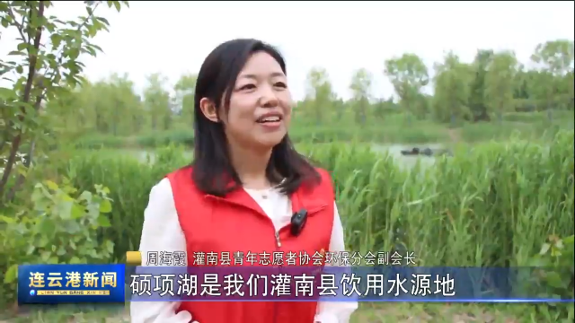 灌南县青年志愿者协会环保分会副会长 周海霞: 硕项湖是我们灌南县饮用水源地,针对湖区出现的“一枝黄花”,我们组织环保志愿者开展了清除“加拿大一枝黄花”专项行动,有效遏制了“一枝黄花”蔓延趋势,为保护环境贡献我们志愿者力量。