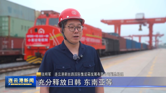 钱明军 连云港新丝路国际集装箱发展有限公司副总经理:我们将以此为契机,充分释放日韩、东南亚等地过境班列的辐射带动效能,进一步扩大“铁路快速通关”模式的实施范围,持续优化运输流程和线路设计,为区域高水平对外开放与高质量发展注入更为强劲的动力。