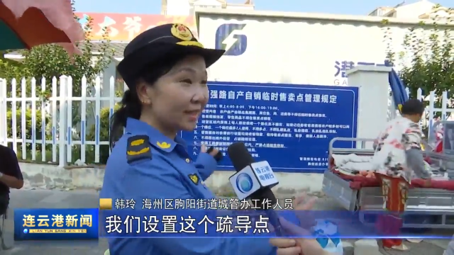 海州区朐阳街道城管办公人员 韩玲:我们设置这个疏导点,它可以把所有的村民集中到一起,可以给他们在这一条街上面,不影响交通的情况下,在路牙石上面一起售卖,我们就集中可以好管理。