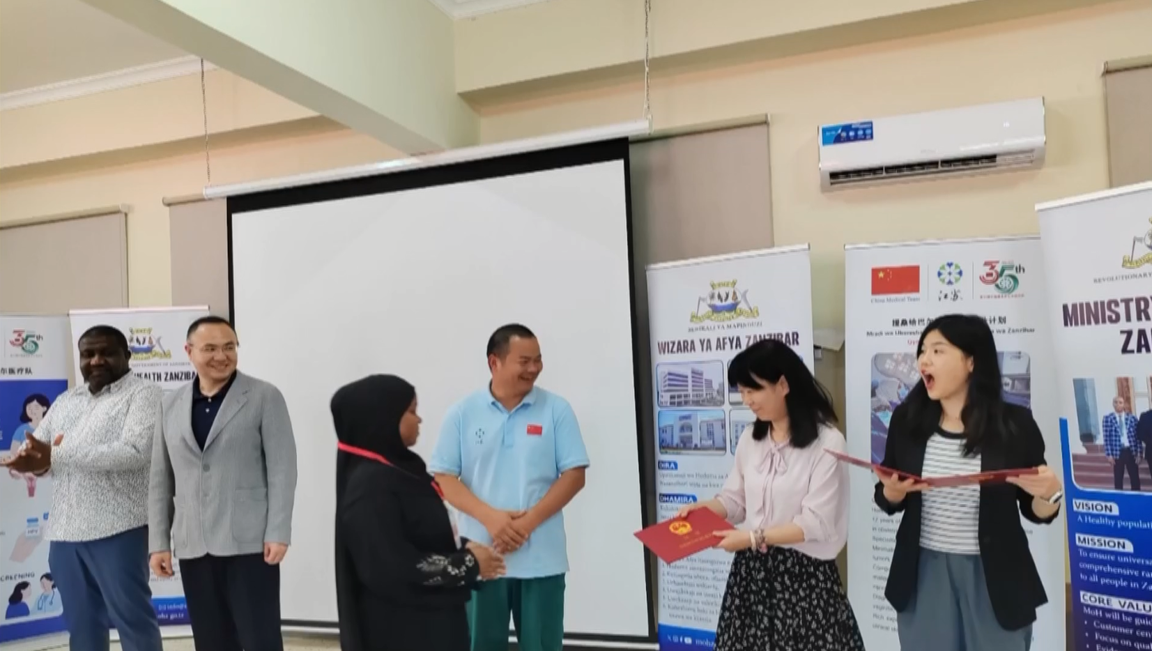 结业仪式上,中国驻桑给巴尔总领馆王宇领事、桑给巴尔卫生部Slim N.Salim博士、培训班专家团队及第35批援桑给巴尔医疗队队长、连云港市第一人民医院胃肠外科副主任包增涛等共同出席。仪式现场,与会嘉宾为参训学员颁发结业证书,桑给巴尔卫生部还为授课中方专家颁发感谢证书,其中包增涛带领的医疗队团队凭借专业付出获高度认可。这份荣誉不仅是对援外工作的肯定,更承载着连云港医疗力量在海外的责任与荣光。王宇领事特别提及医疗队的务实作为,高度赞誉其为桑给巴尔卫生领域发展及中桑医疗合作作出的积极贡献,凸显连一院专家团队在援外工作中的关键作用。