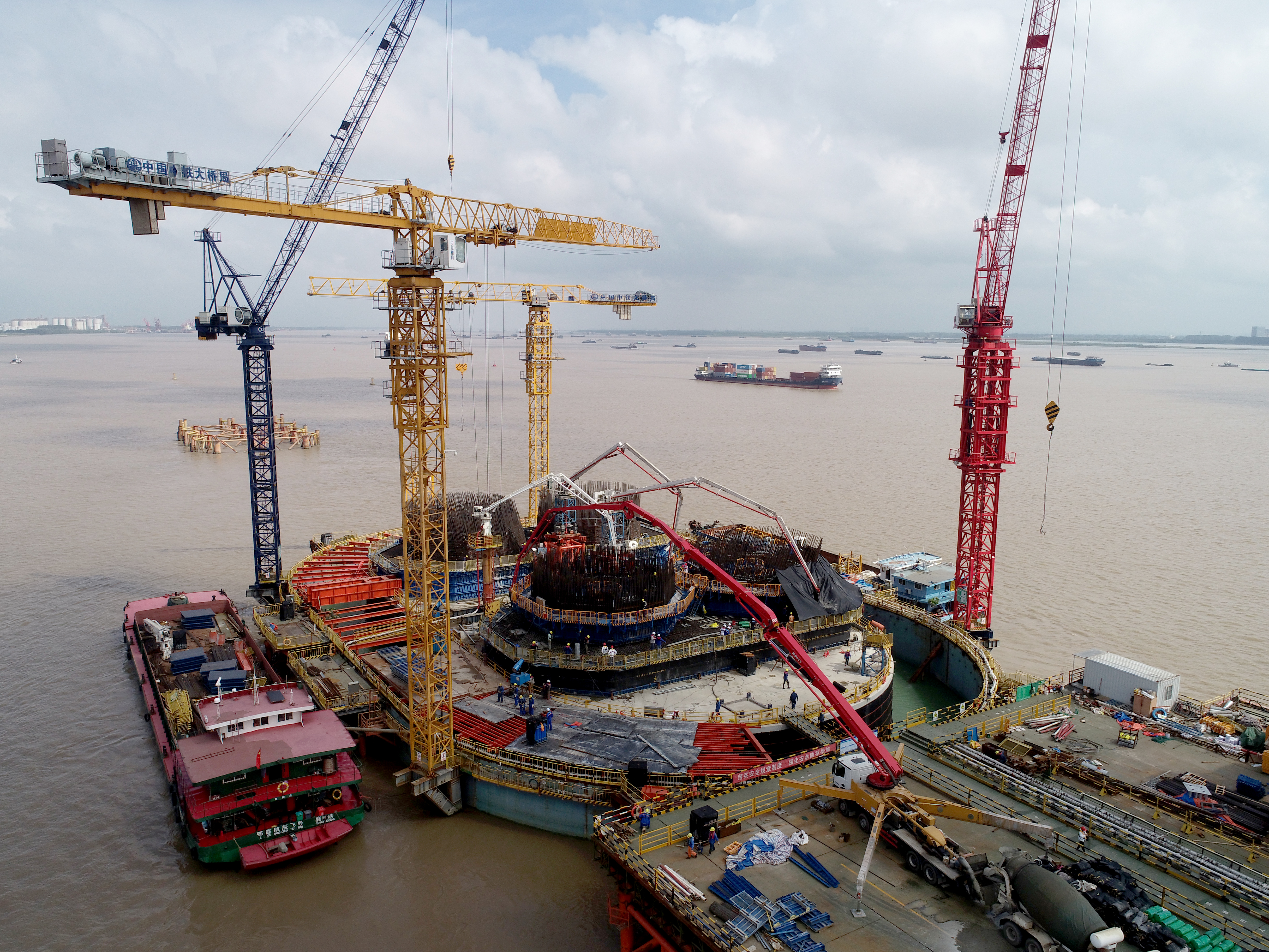 常泰长江大桥正在开展主塔塔座和下塔柱施工,专用航道桥、非通航孔桥承台和墩身施工;