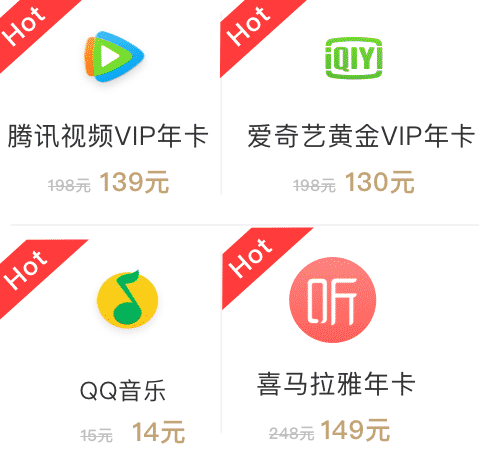 腾讯、爱奇艺、优酷视频会员 & 网易云、QQ、酷我音乐 &喜马拉雅、作业帮 &摩拜单车、哈啰单车...... 互联网热门权益享受抄底折扣价!