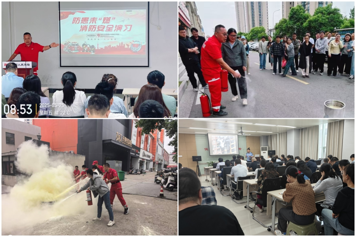 立足自身安全,强“消防实战”练内功。市分公司将消防安全作为重中之重,组织全员消防演练。活动将知识普及与实战演练紧密结合,员工深入学习火灾防范、逃生自救及灭火知识后,立即投入实战——模拟火警响起,全员迅速反应,严格遵循“弯腰捂鼻、有序撤离”要求,高效疏散至安全区域;灭火器实操环节,员工分组练习,精准掌握“一提二拔三握四压”使用要领。
