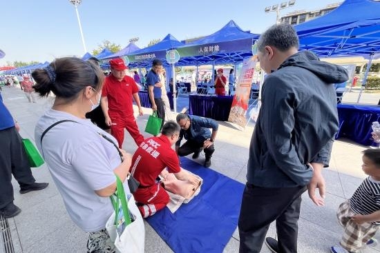 活动现场,人保财险连云港市分公司设置了专门的宣传展位,向市民发放安全生产责任保险产品手册、安全隐患排查指南等宣传资料,耐心解答群众关于安全生产责任保险的咨询。为增强互动性和实用性,公司特别安排专业人员进行心肺复苏(CPR)实操演示,通过模拟人现场教学,直观展示急救操作流程。专业的讲解、规范的操作吸引了众多市民围观学习,不少群众还主动参与实践,活动现场学习氛围热烈。