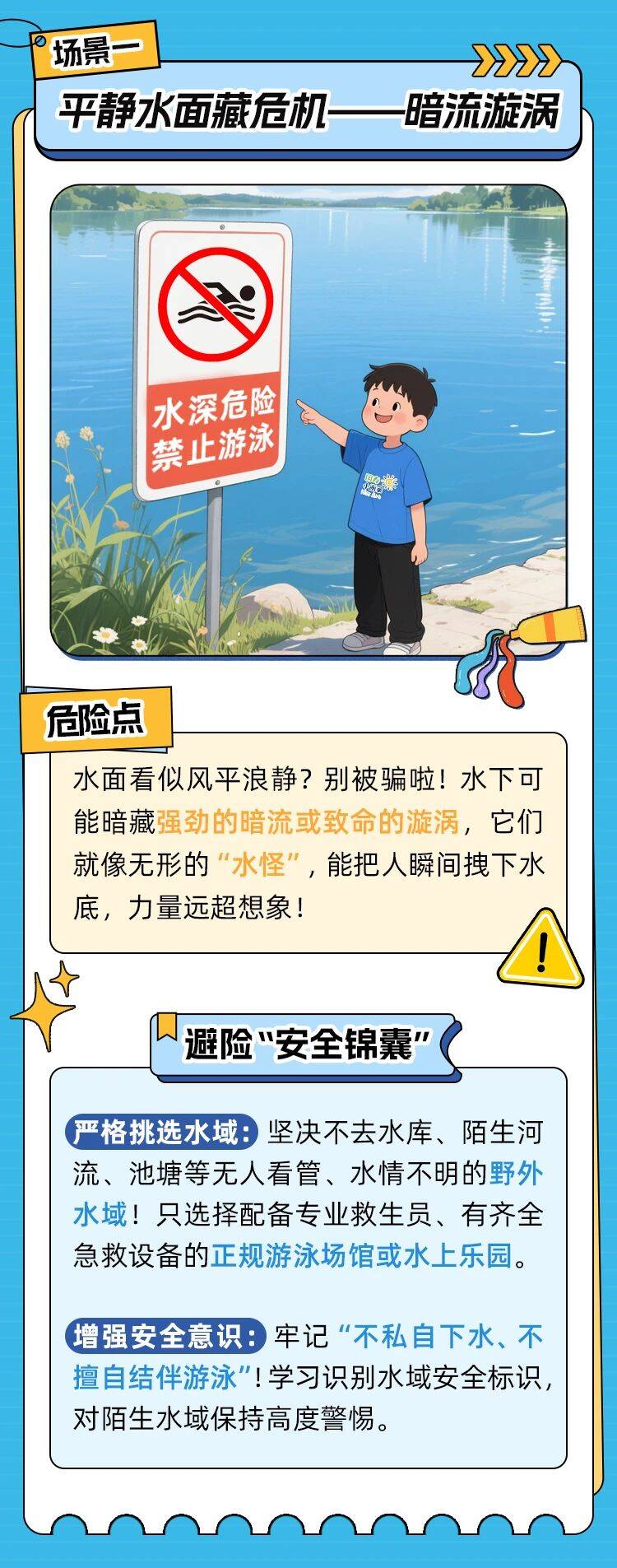 水上乐园闯关指南!小画家带您解锁防溺水“安全锦囊”~