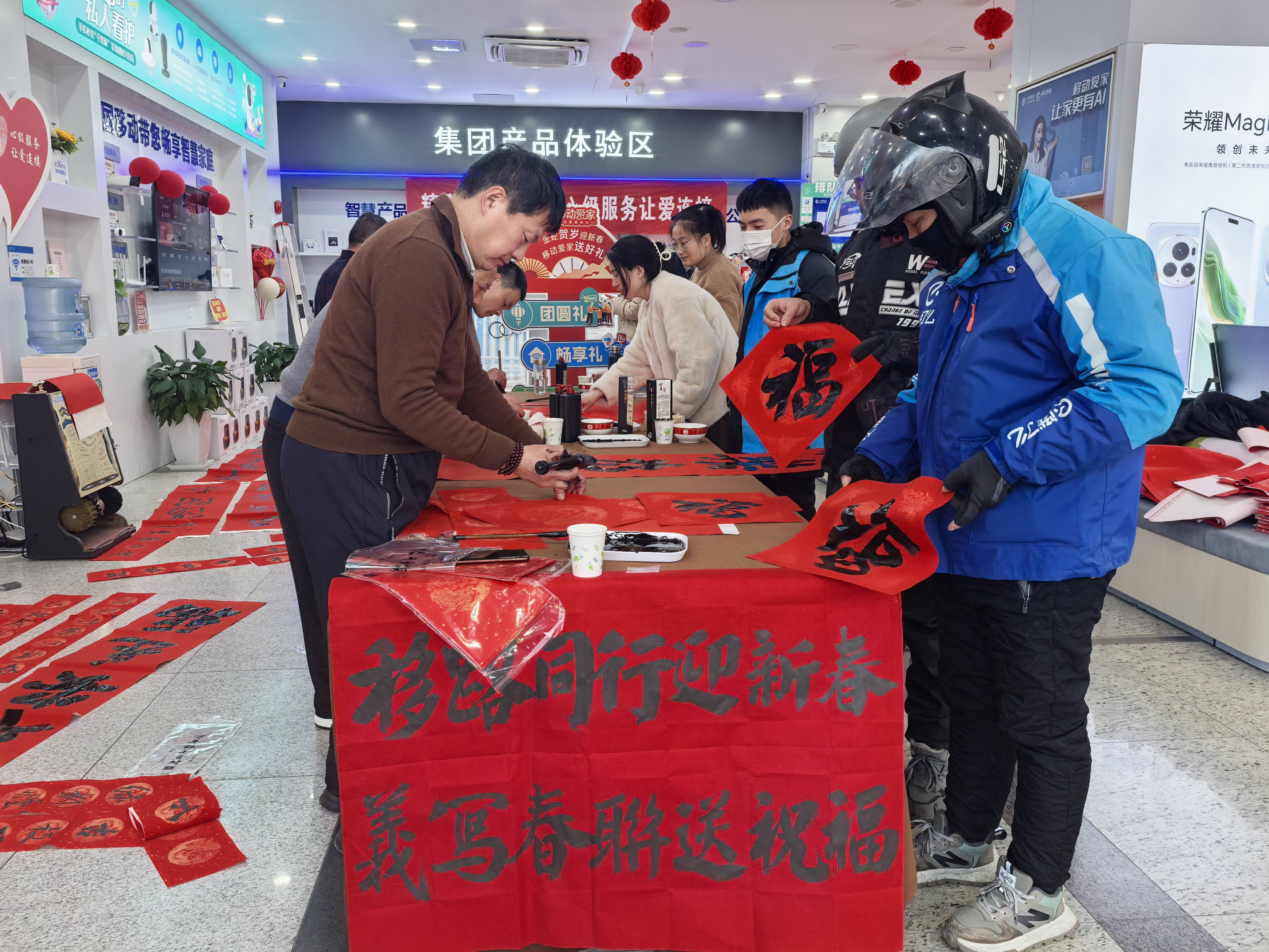 新春佳节前夕,为加强对户外劳动者的关怀与服务,连云港赣榆移动在华中南路主营业厅举办“书福迎春 幸福连家”暖心活动,特别邀请了环卫工人、快递员、外卖员、网约车司机等新就业形态劳动者参与。