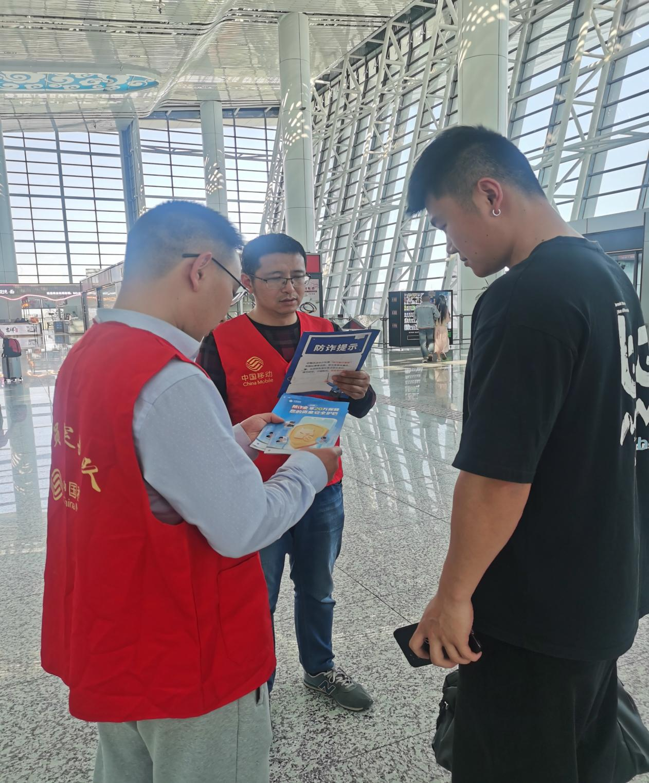 连云港灌云移动走进机场开展防诈骗志愿宣传活动