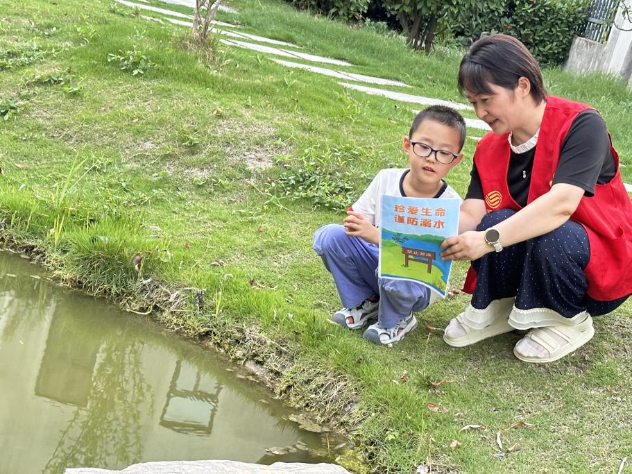 “人防”宣传筑牢安全意识防线。在社区、乡镇及重点水域,连云港灌云移动志愿者向孩子们详细讲解“四不要”原则:不在无家长的带领下私自下水游泳;不擅自与同学结伴游泳、戏水;注意安全警示,不到无安全措施、无救护人员、无安全保障的水域游泳;家长以及学校严格教育学生不要到河边、水沟、水渠等有水的地方玩耍或钓鱼,以防不测。此外,志愿者们还通过发放宣传册等方式教育引导儿童学习防溺水知识,增强防溺水安全意识。