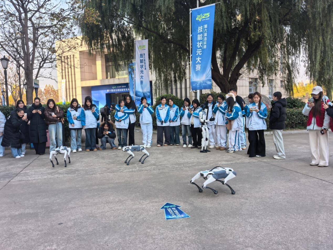 闭幕式上,由连云港移动带来的5G机器人及机器狗方阵表演成为全场焦点,呈现出一场充满未来感的人机协同展示。伴随着动感的音乐节奏,机器狗方阵灵活舞动,精准完成了跳跃、翻滚等高难度动作,其整齐划一、科技感十足的表演引得现场掌声雷动,惊叹不断。众多师生纷纷举起手机,记录下这震撼而新奇的一幕。