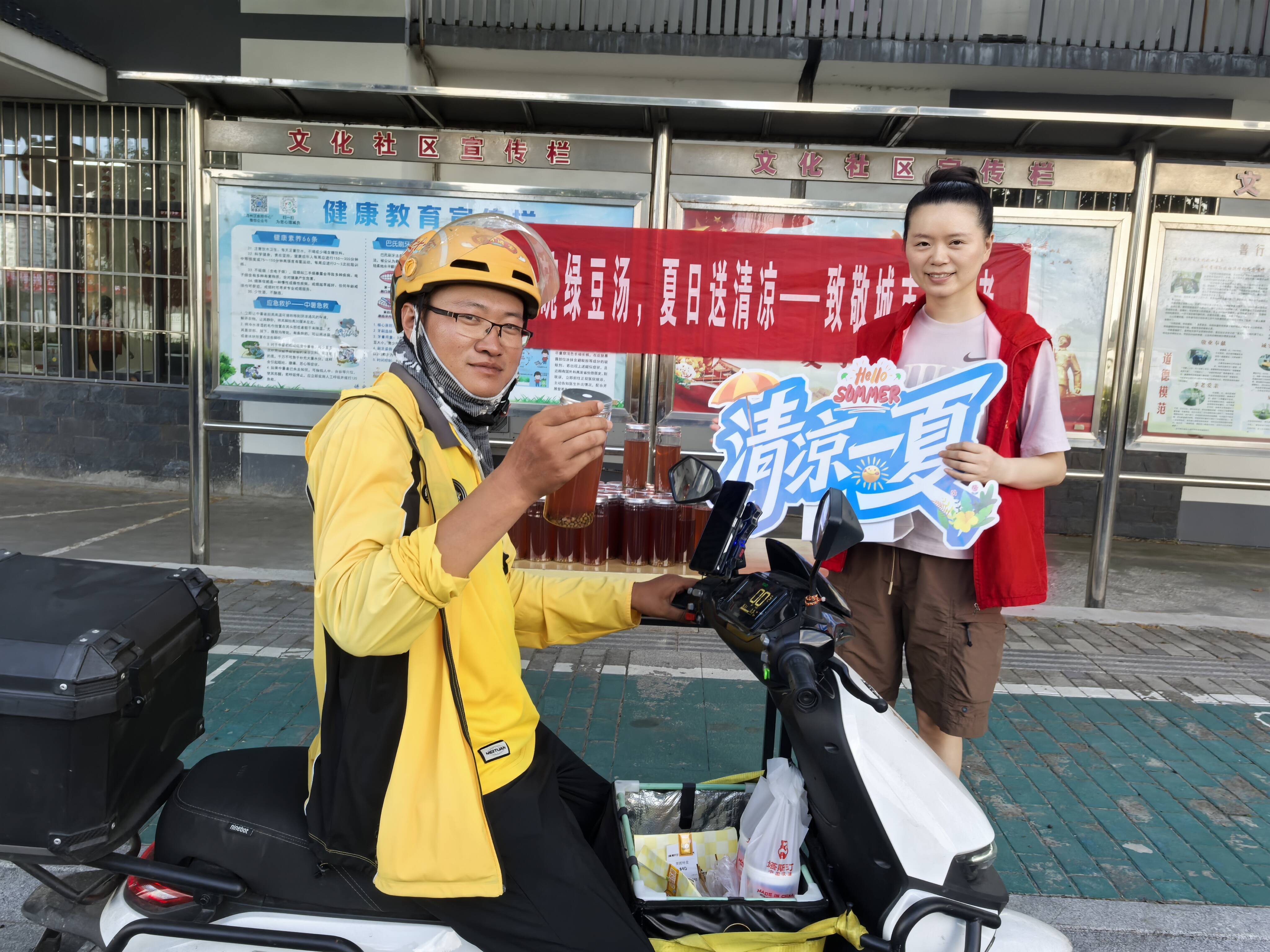 清凉一夏,党建关怀润心田。在社区党委的组织策划下,驿站开展了“清凉一夏”主题关爱活动。党员志愿者们早早熬制好软糯清甜的绿豆汤,一杯杯送到劳动者手中;同时备足藿香正气水、花露水等防暑驱蚊“爱心包”。一位外卖小哥喝着绿豆汤,忍不住在工作群里“安利”:“文化社区的驿站太贴心了,路过的都来喝一杯,解暑!”很快,驿站里就多了不少闻讯而来的新面孔,大家笑着道谢,空气中都是热热闹闹的暖意。