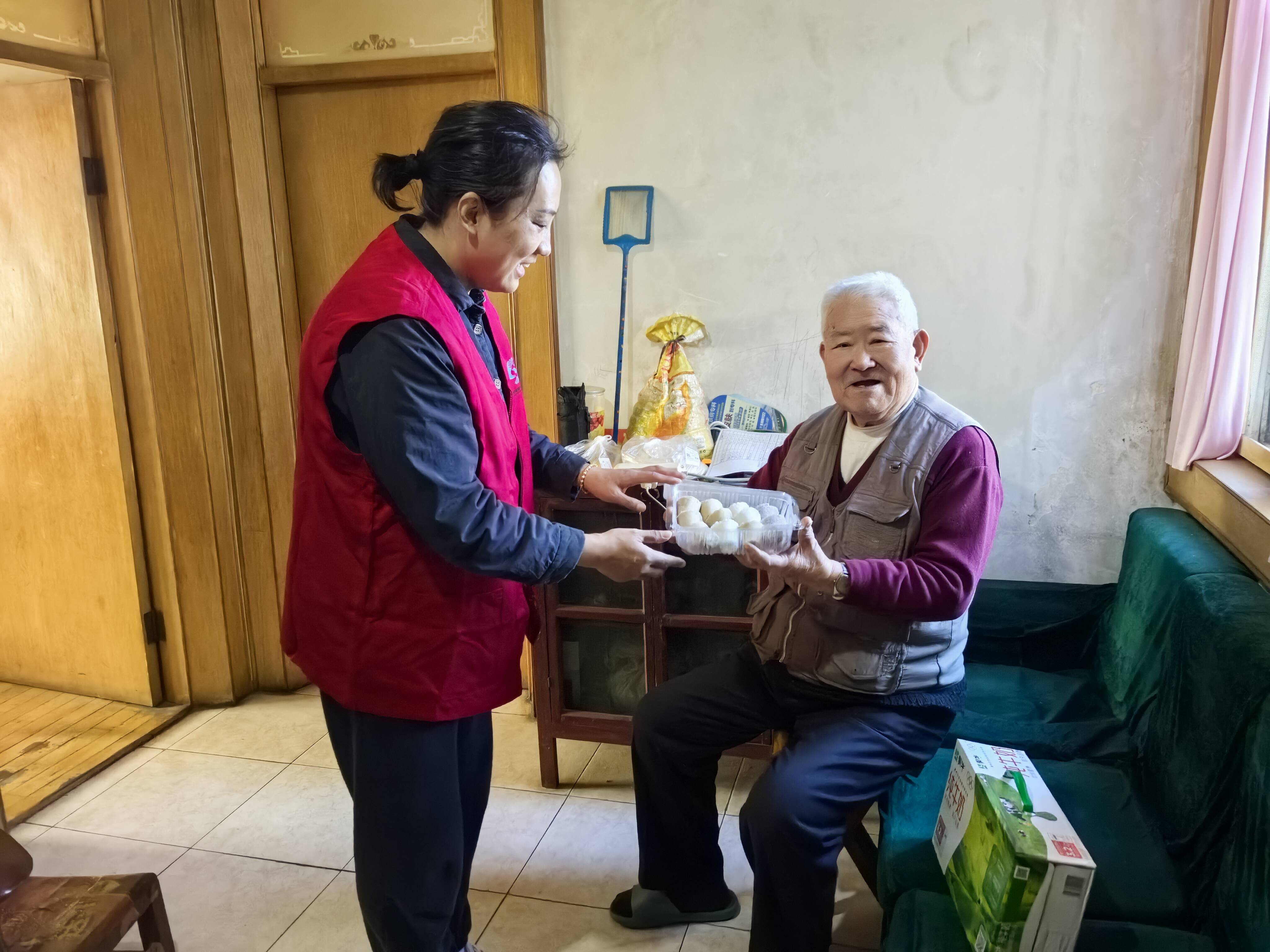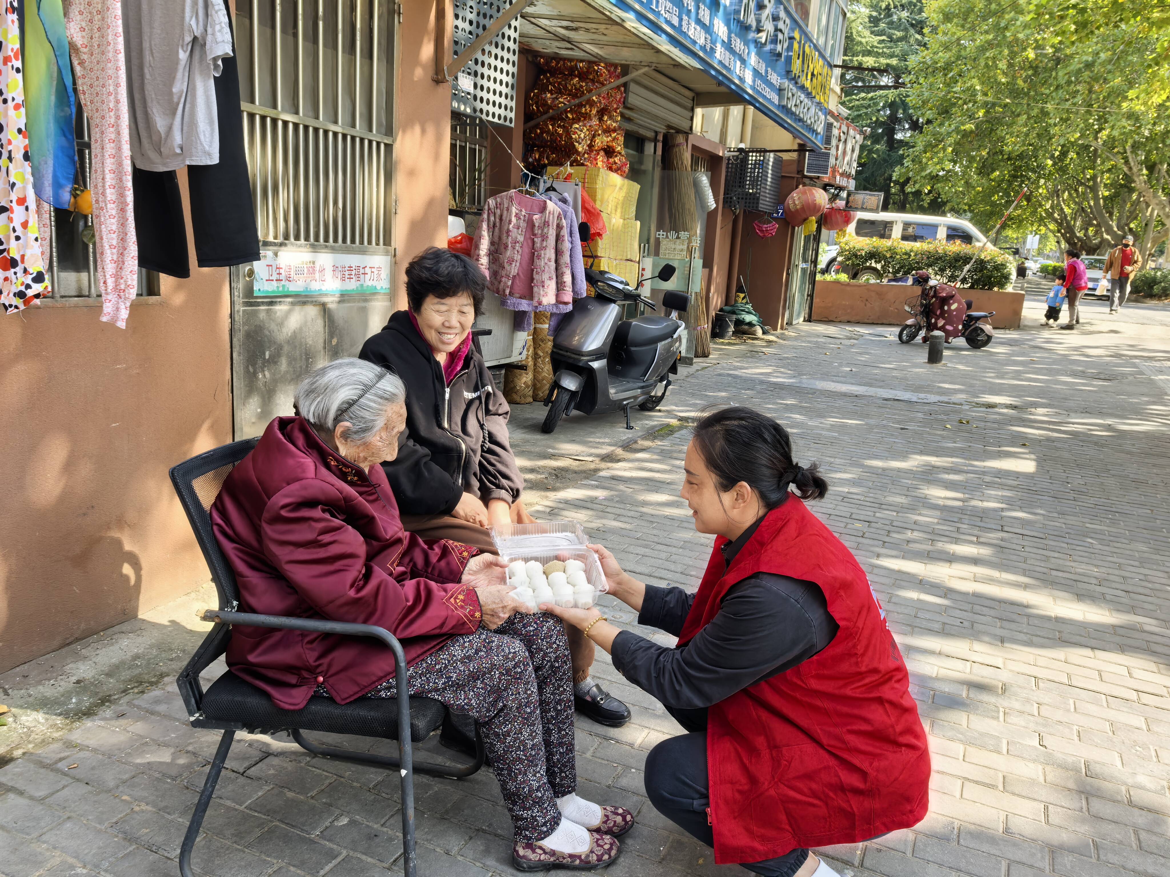 “奶奶,重阳节快到了,我们代表社区来看看您,祝您节日快乐,身体健康!”在百岁老人唐奶奶家中,社区党员志愿者亲切地握着老人的手,仔细询问她的身体状况、饮食起居以及日常需求。唐奶奶虽已过期颐之年,但精神矍铄,思维清晰。看到社区工作人员的到来,她脸上洋溢着幸福的笑容,连声道谢:“这蒸糕香甜,我心里真是暖洋洋的。生活在咱们这个社区,真幸福!”