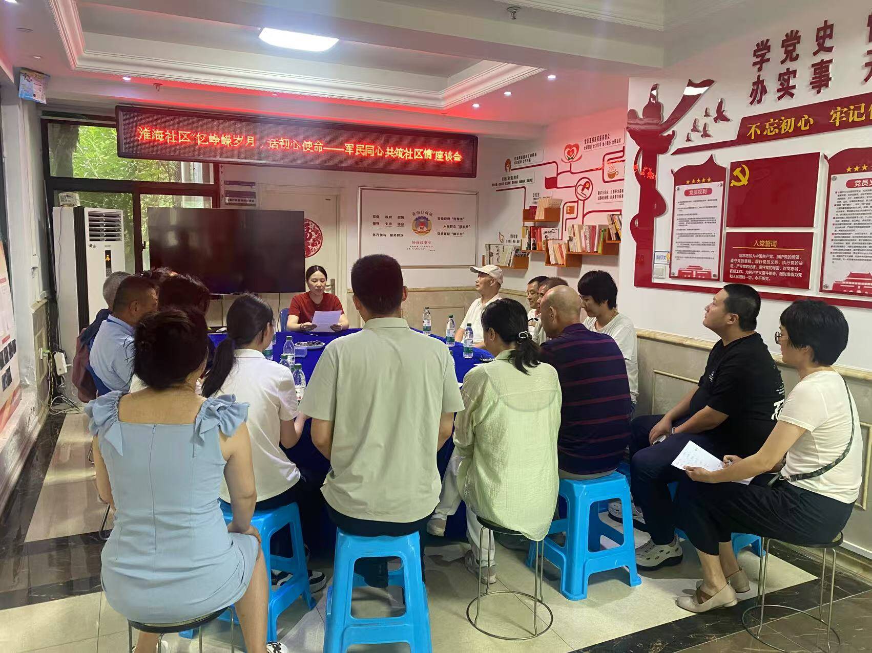 时值纪念中国人民抗日战争暨世界反法西斯战争胜利80周年和八一建军节到来之际,7 月 30 日下午,郁洲街道淮海社区党委以 “淮聚万家红领商圈 ‘忆峥嵘岁月,话初心使命——军民同心共筑社区情’” 为主题,在社区党群服务中心举办退役军人与党员座谈会。