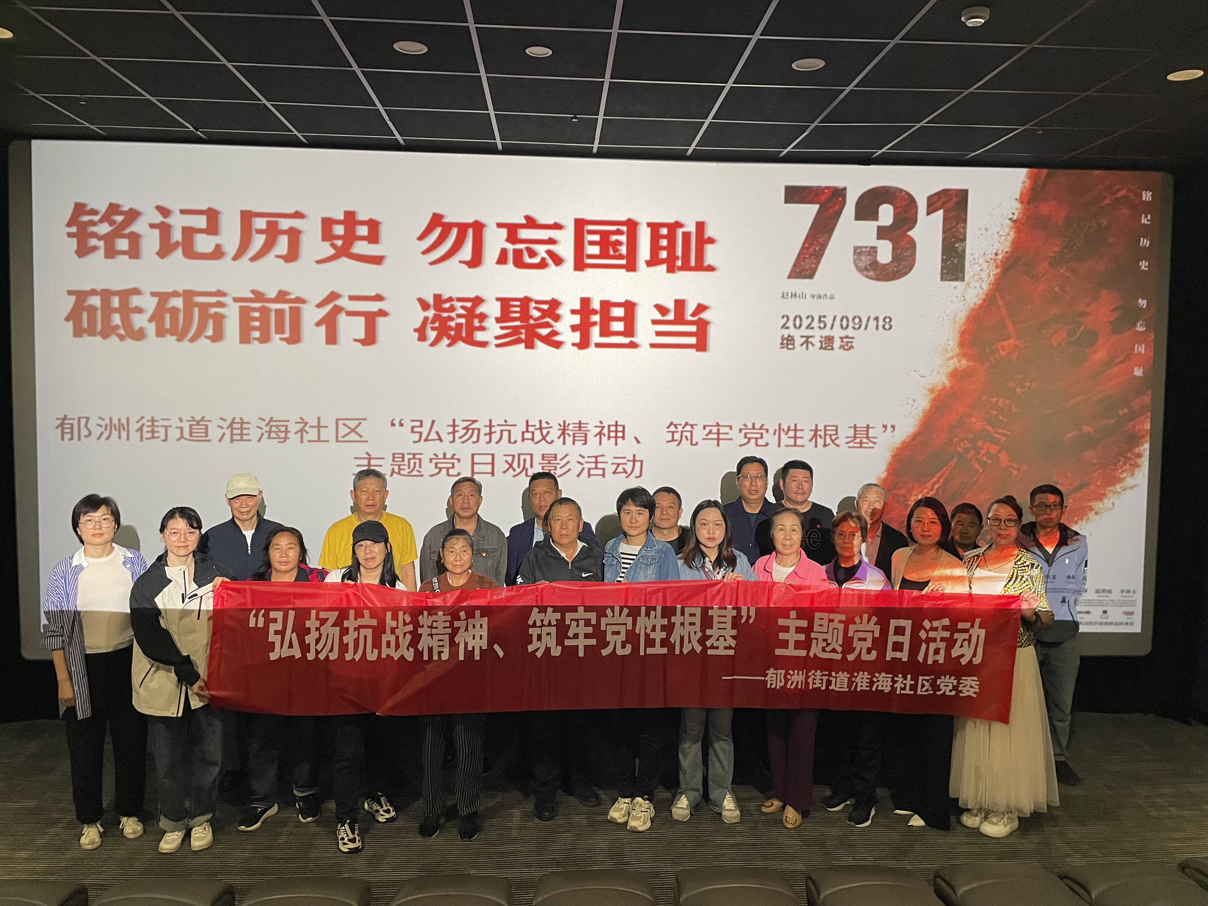 为深化党史学习教育,9月24日下午,郁洲街道淮海社区党委依托“茉莉花开”文艺直通车活动,组织辖区党员及退役军人开展 “弘扬抗战精神、筑牢党性根基” 主题党日观影活动,集体观看影片《731》。活动既在追忆峥嵘岁月中厚植爱国情怀,让“茉莉花开”的纯洁初心与坚韧力量随红色教育传递,更以历史为鉴凝聚 “强国复兴有我” 的奋进力量。