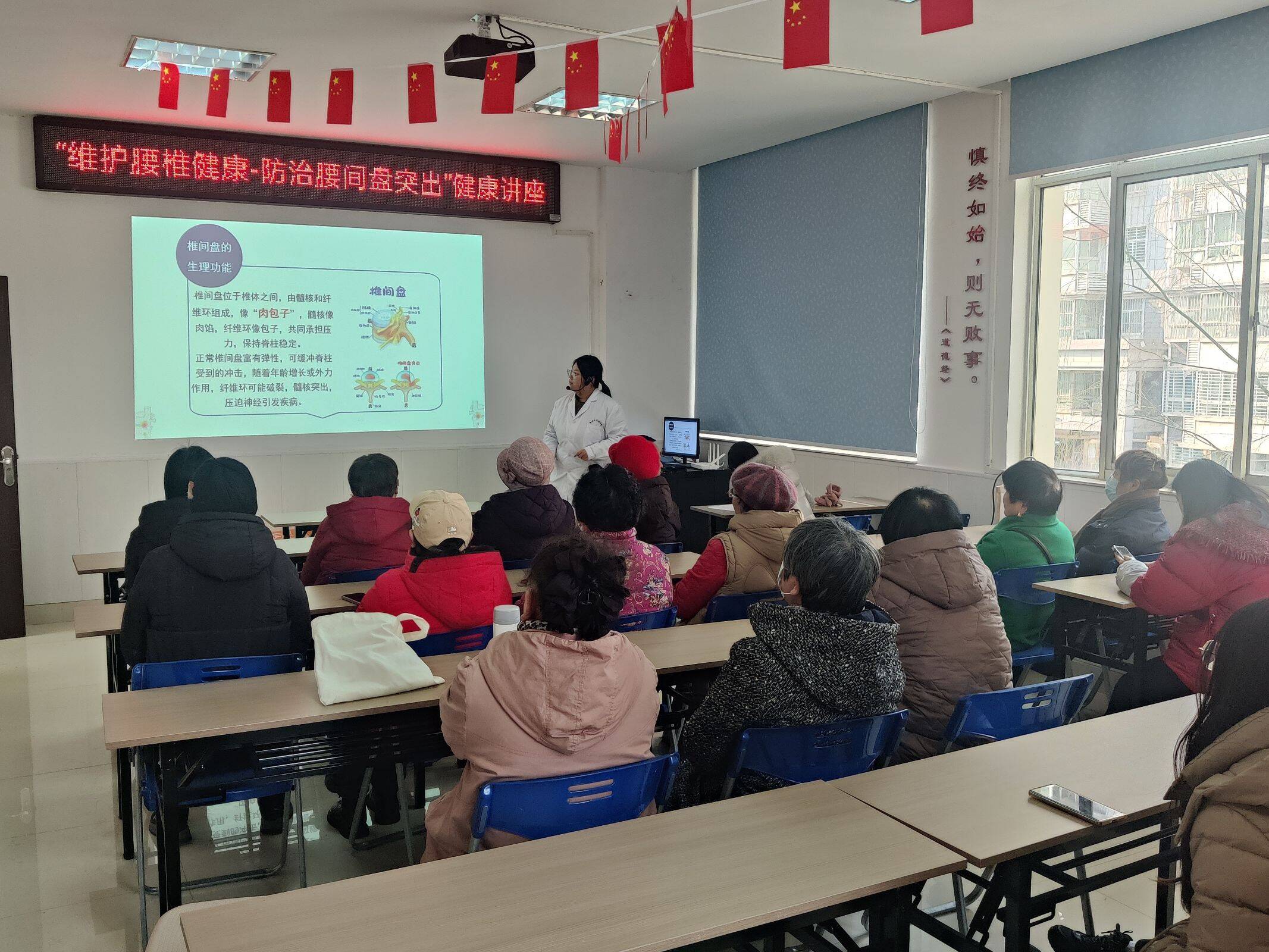 如今腰间盘突出症发病率逐年上升且趋于年轻化,严重影响人们生活质量,为提高居民对腰椎健康重视,普及防治知识,2月21日下午,郁洲街道东苑高新社区联合康达学院举办了主题为“维护腰椎健康-防治腰间盘突出”的健康讲座项目。