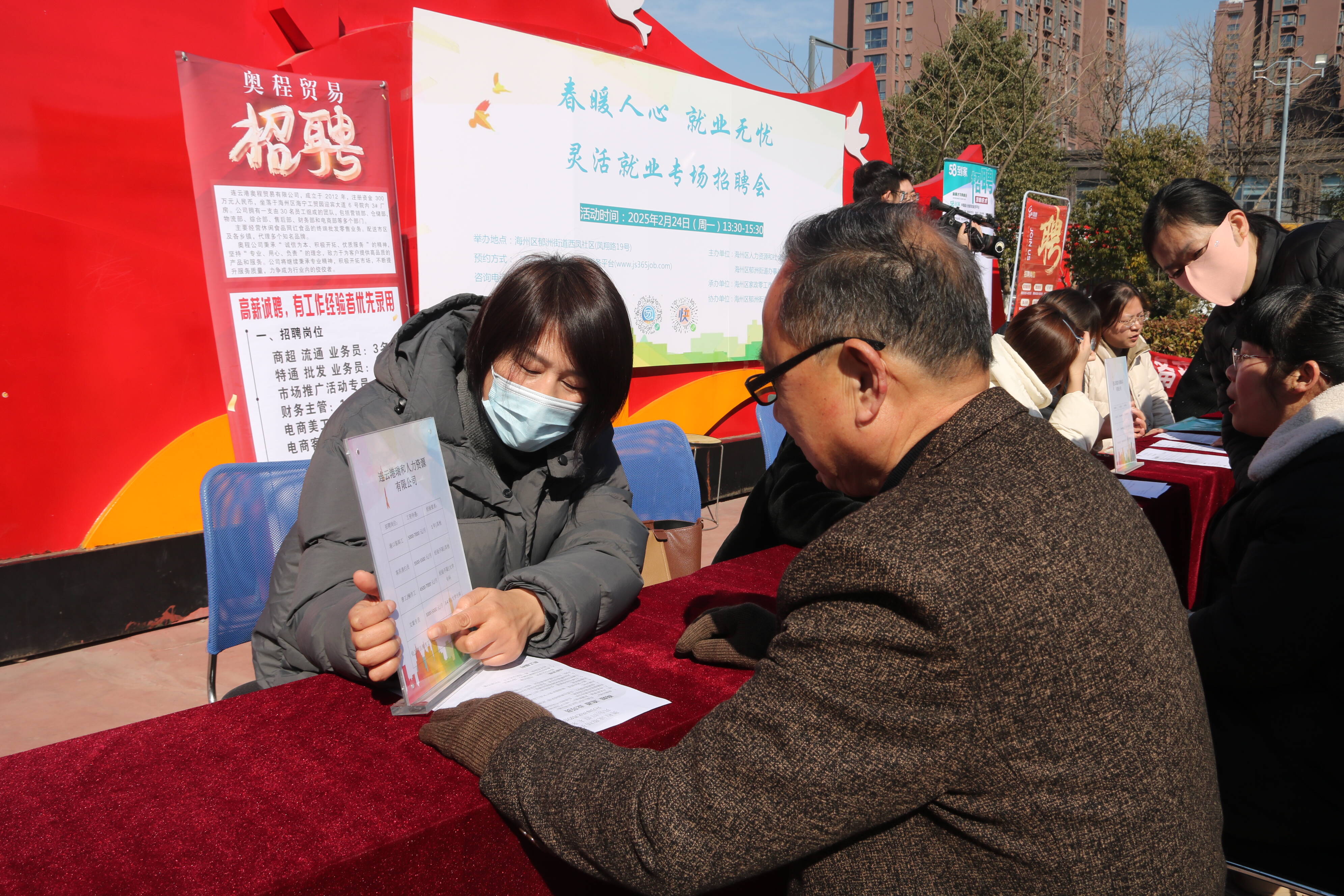 2月24日下午,一场以“春暖人心 就业无忧”为主题的海州区灵活就业专场招聘会在郁洲街道西凤社区百姓大舞台举行。此次招聘会由海州区人社局、海州区郁洲街道联合主办,海州区家政零工市场与郁洲街道西凤社区承办,旨在为灵活就业人群搭建便捷、高效便捷的求职平台。