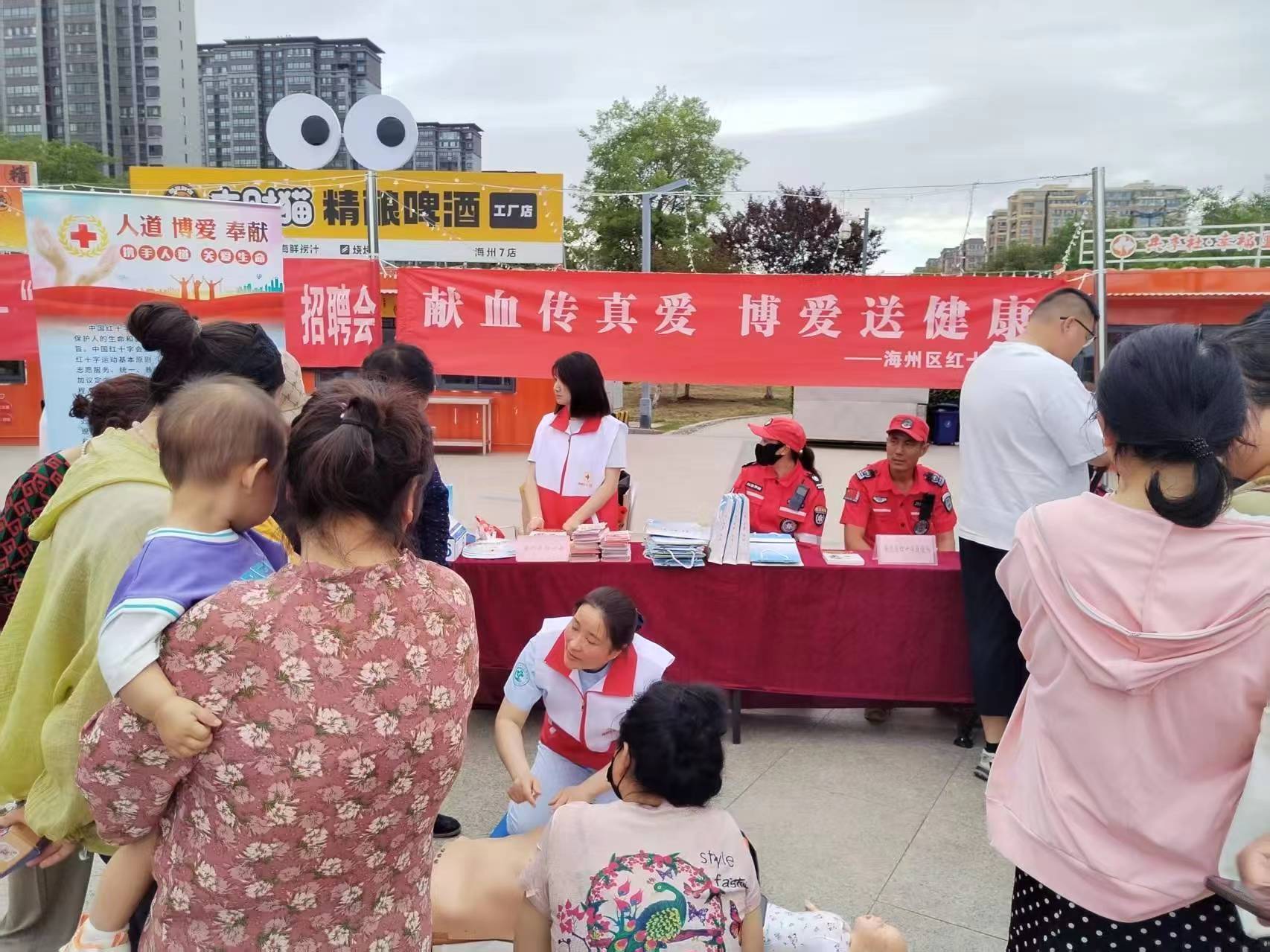 在第22个“世界献血日”即将来临之际,为弘扬“人道、博爱、奉献”的红十字精神,宣传普及无偿献血及卫生健康知识,提升群众健康理念,6月12日下午,郁洲街道联合海州区红十字会、连云港市中心血站、连云港市第二人民医院、连云港市光明眼科医院、连云港市消防救援支队花果山特勤站、海州区郁洲社区卫生服务中心在西凤社区博爱家园广场开展主题为“献血传真爱、博爱送健康”的主题宣传活动,吸引众多市民踊跃参与。