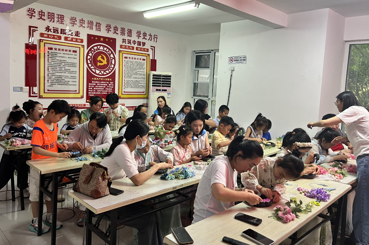 为传承中华优秀传统文化,增进亲子间的情感联结,7月30日下午,郁洲街道东河社区开展“茉莉花开”“指尖非遗 簪花寻梦”亲子手工活动,邀请暑托班家长与孩子共同体验传统手工艺的魅力,在指尖流转间感受文化传承与亲情温暖。