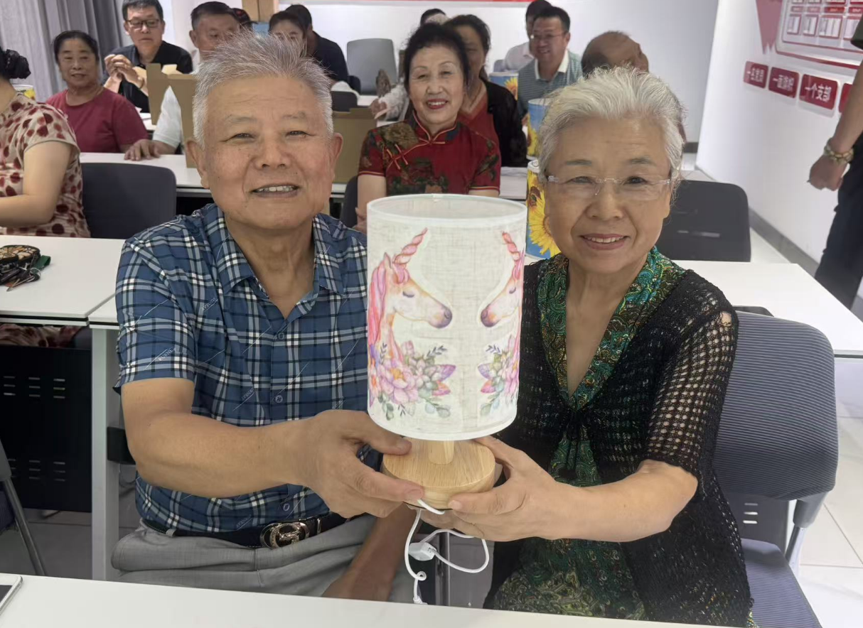 活动现场,夫妻们配合默契。丈夫们专注而细心地搭建灯架,为作品奠定坚实的基础;妻子们则心灵手巧地粘贴灯面、精心点缀装饰,让灯笼逐渐变得精美。过程中,他们偶尔轻声交流,相视一笑间,满是甜蜜与幸福。