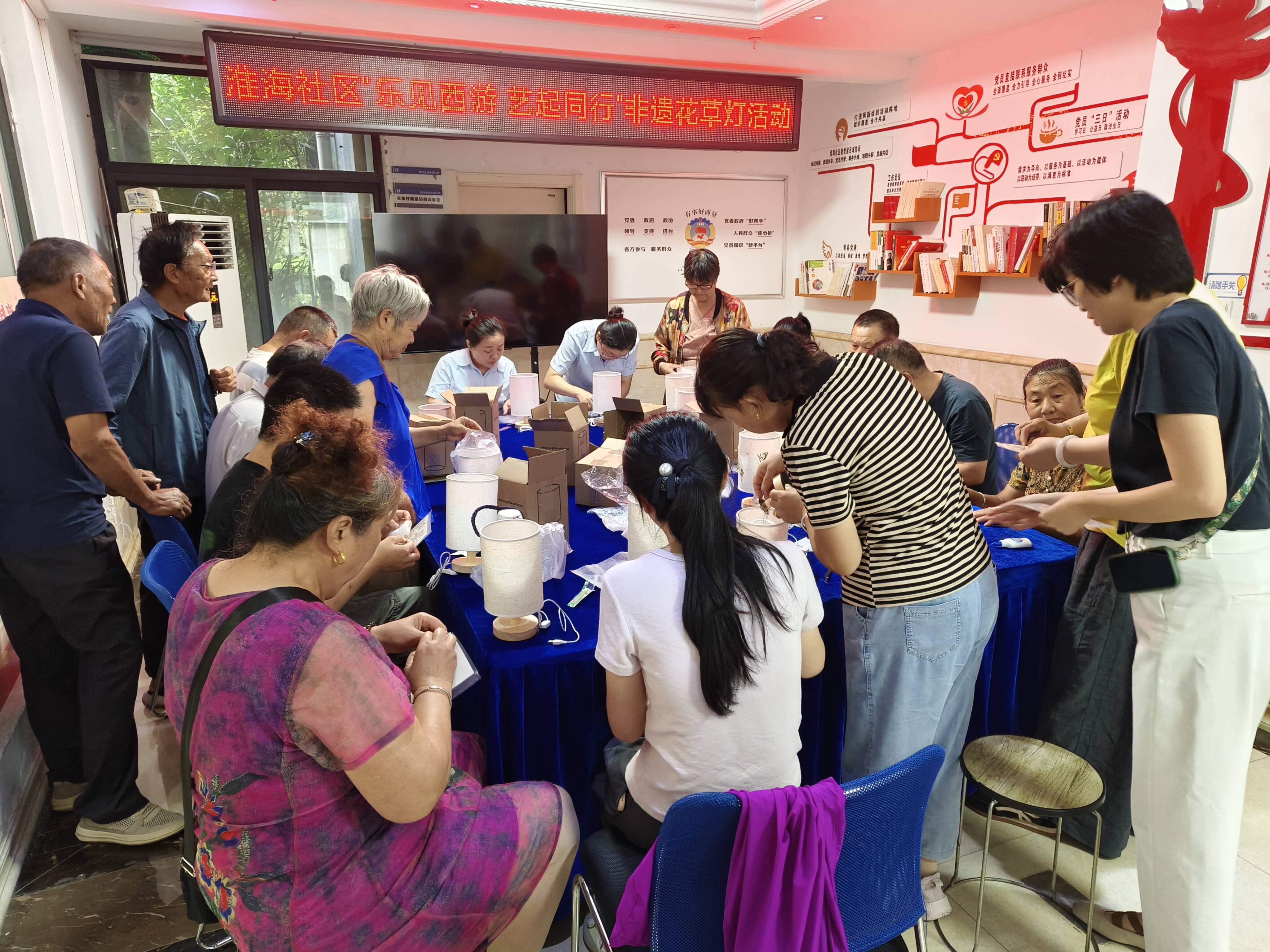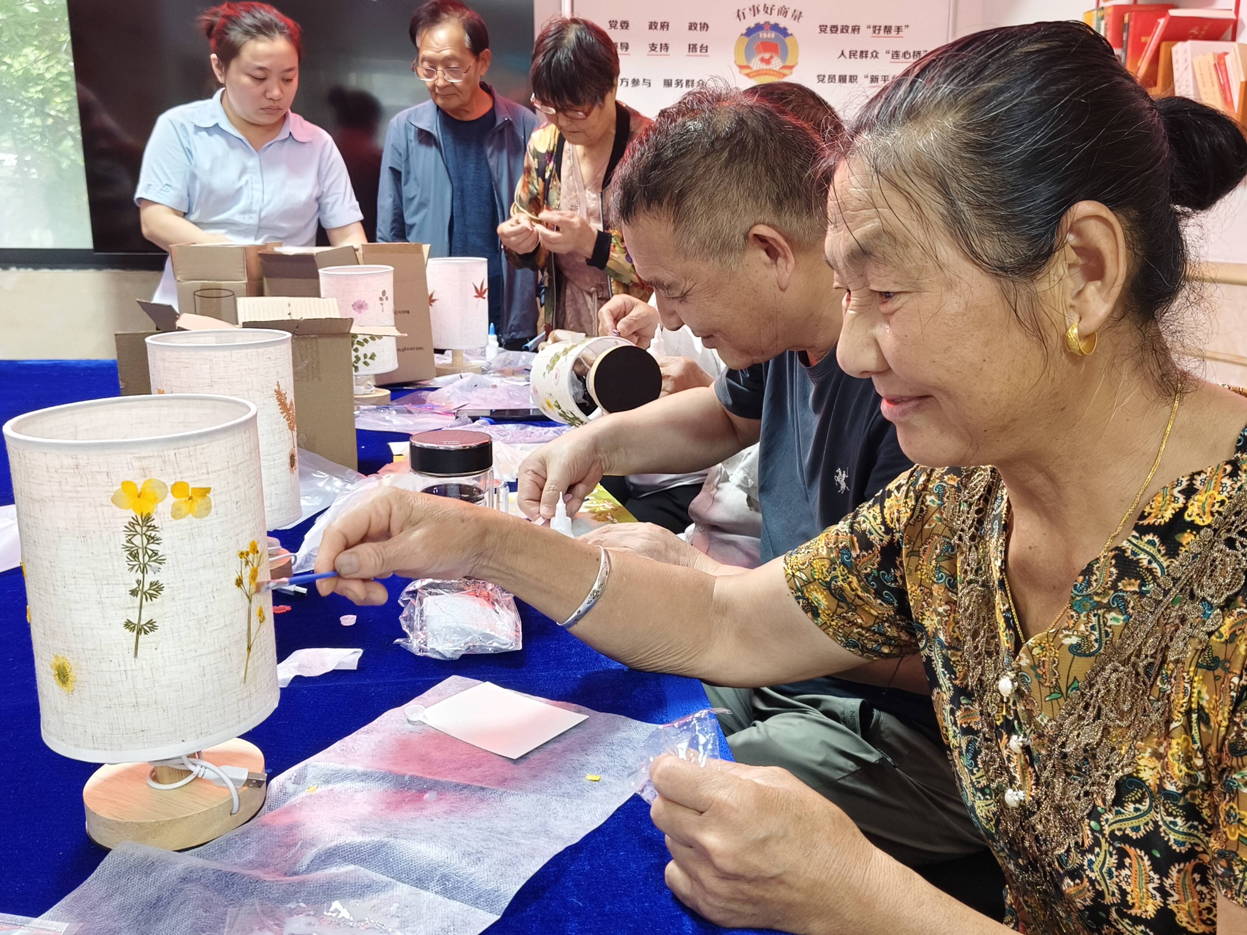 当日下午三点,淮海社区活动室内,“手工非遗花草灯”活动率先启动。在专业老师指导下,居民巧手制作花草灯,让非遗技艺在当代生活焕新活力。