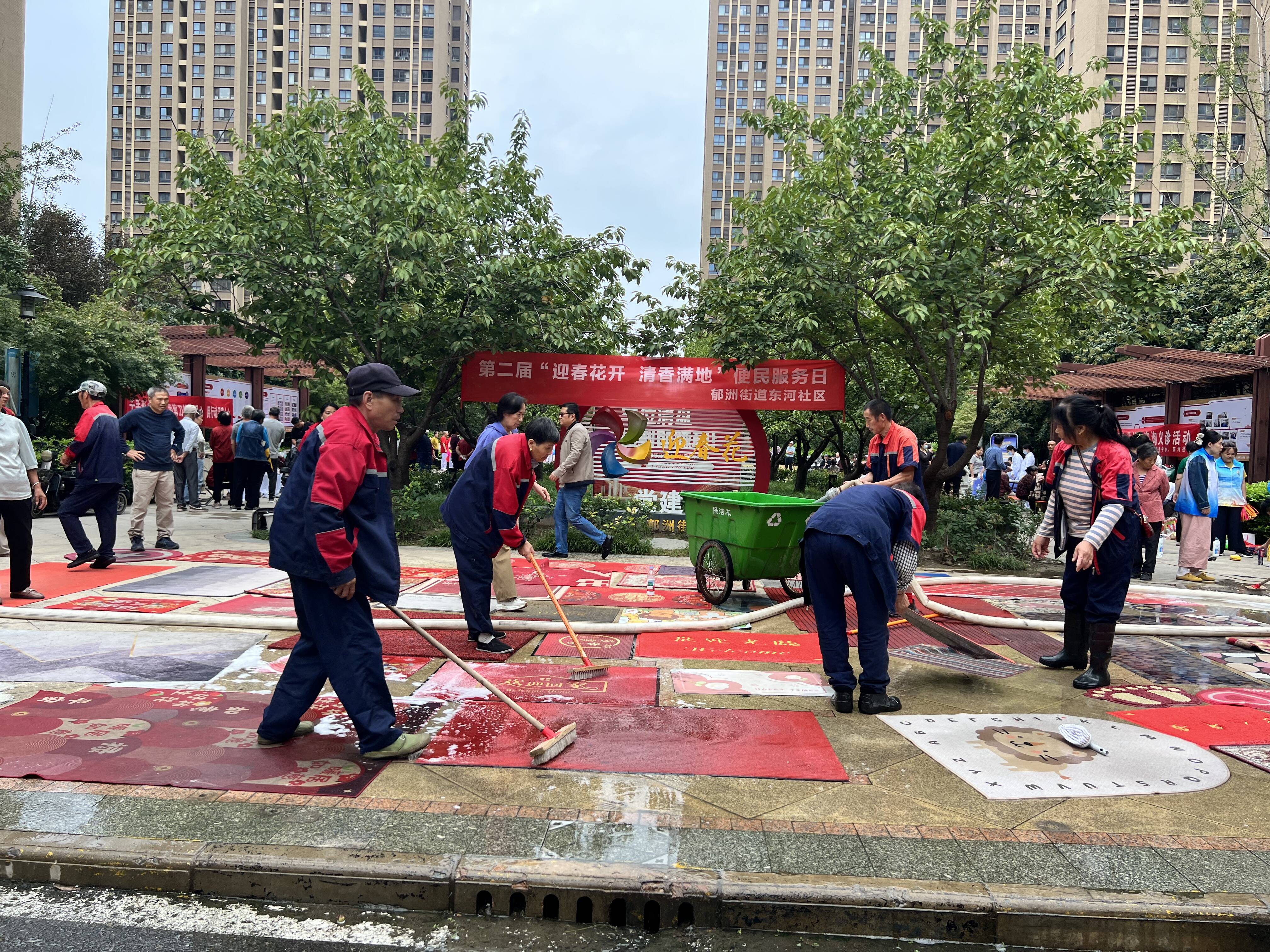 便民服务区同样热闹非凡。义剪点位为老人免费理发,老人们笑称“剪出了精气神”;法律咨询台前,律师耐心解答房产纠纷难题;医护人员为居民测血压、健康问诊;磨刀服务点“嚯嚯”声不断,几十余把刀具重焕锋利;地垫清洗区,志愿者们冲走污渍,地垫洁净如新;“福气圈圈乐”游戏区笑声连连,居民套中奖品喜上眉梢。