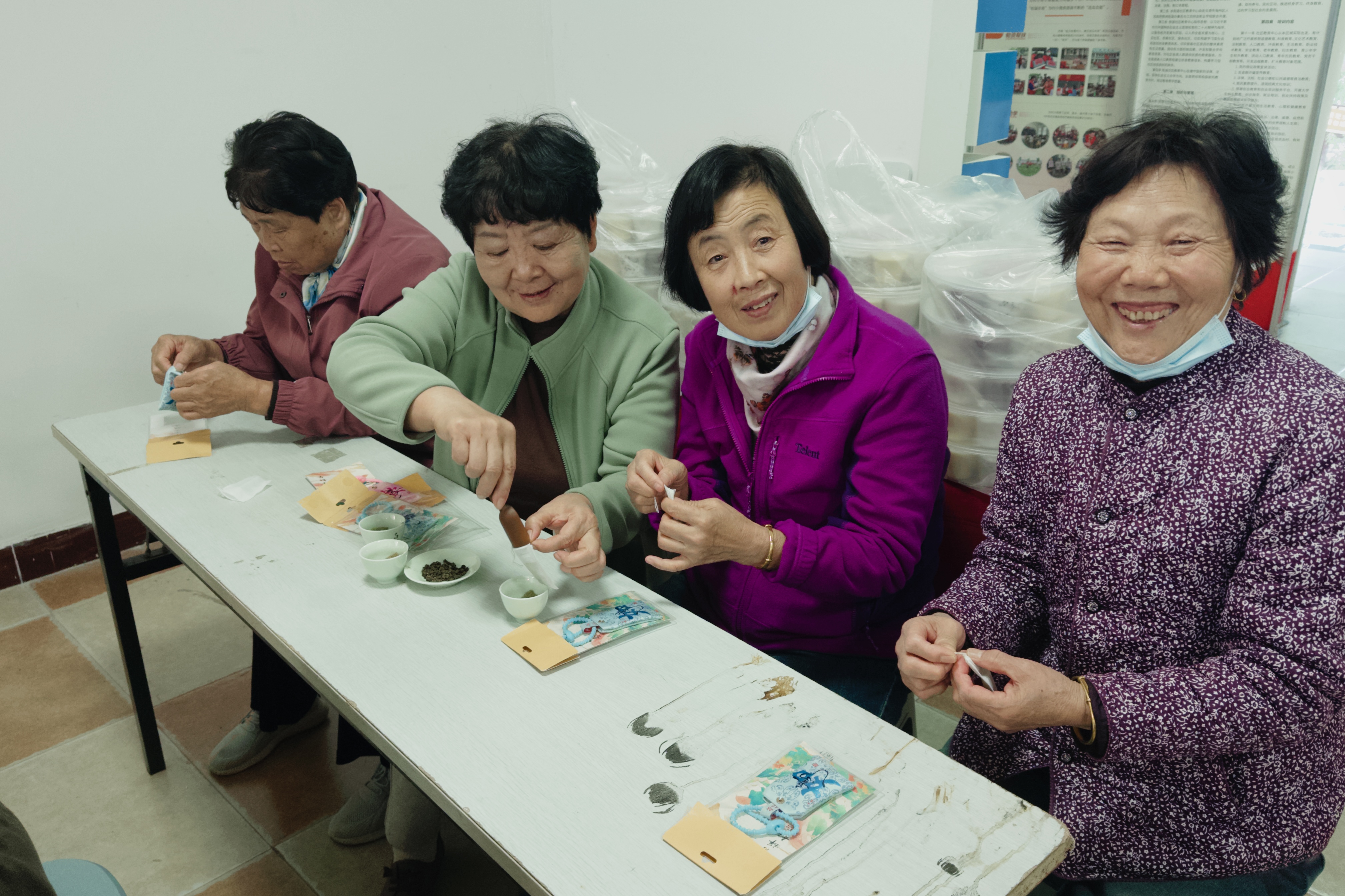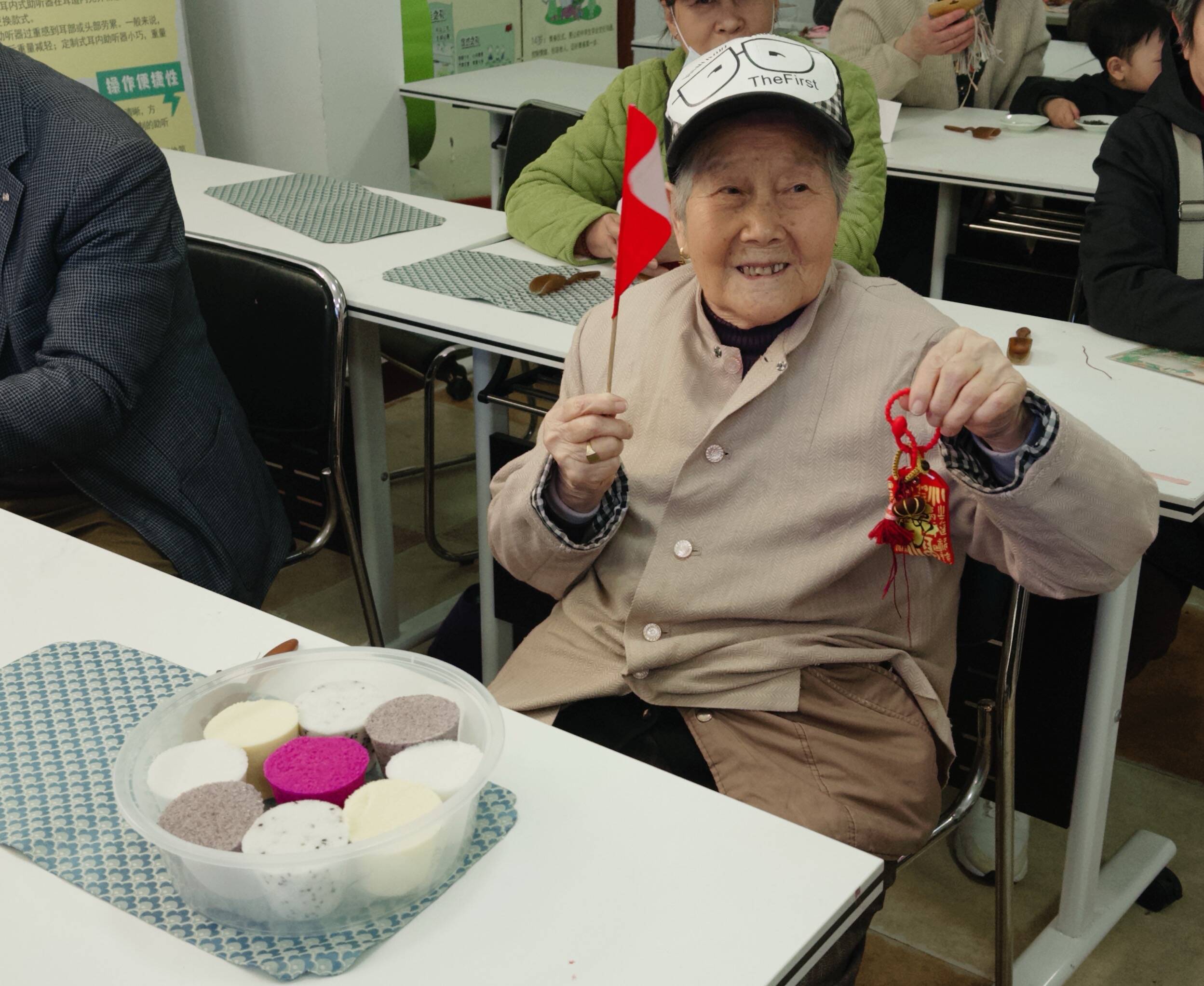 随着活动开始,非遗手工香囊制作环节率先拉开帷幕。专业老师耐心细致地为老人们讲解香囊的历史文化、制作技巧及香料的寓意,从穿针引线的手法到香料搭配的讲究,每一个步骤都讲解得清晰易懂。老人们听得认真,学得专注,纷纷拿起针线和布料动手尝试。有的老人眼神虽有些许浑浊,但在志愿者的协助下,依旧稳稳地将线穿过针孔;有的老人则相互交流技巧,你帮我扶着布料,我帮你整理丝线,现场一片热闹祥和。不一会儿,一个个造型精致、香气四溢的香囊便在老人们手中诞生,香囊内装入的茱萸、香茅等香料,不仅散发着清新气息,更寄托着大家对健康平安的美好期盼。