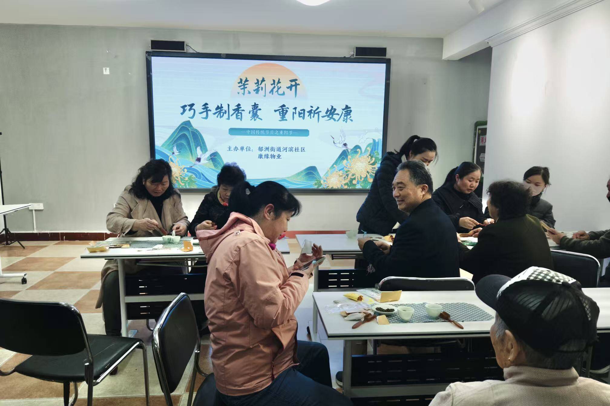 为弘扬中华民族尊老、敬老、爱老、助老的传统美德,丰富社区老年人的精神文化生活,重阳节当天下午,郁洲街道河滨社区联合康缘物业精心举办“茉莉花开”“巧手制香囊,重阳祈安康”重阳节主题活动,让社区老人们在温馨氛围中度过了一个别样的节日。