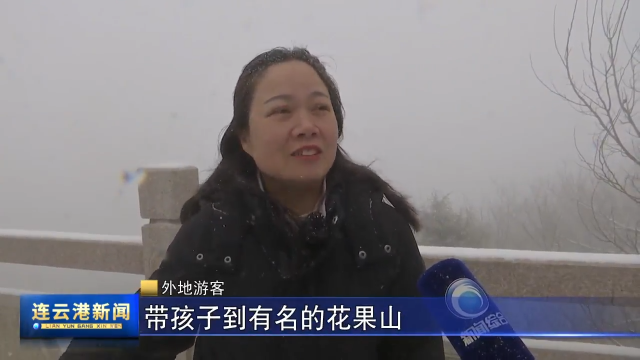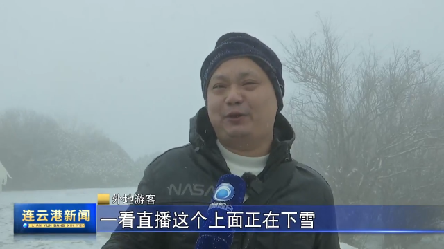 外地游客:正好看到你们连云港直播这个上面正在下雪,立马就决定上山来看雪来了,非常不错运气特别好。