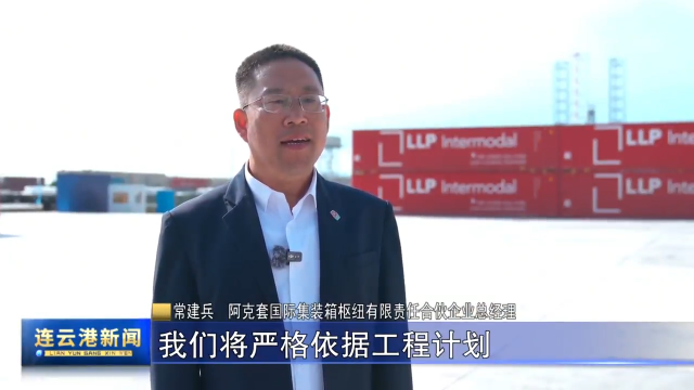 常建兵 阿克套国际集装箱枢纽有限责任合伙企业总经理:在完成先导区建设后,我们将严格依据工期计划,高效推进剩余工程建设,主要包括房建施工、综合管网铺设、外接水电及配套工程、第二台轨道式龙门起重机的安装及调试等剩余工作,确保整个一期项目于2025年底如期竣工投产。