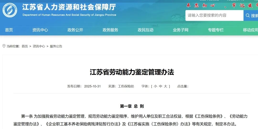 《江苏省劳动能力鉴定管理办法》明年1月1日施行
