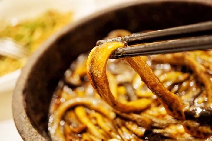 其次,挑鳝鱼还得看脸看身材。鳝鱼圈里以肥为贵,越是粗一点的鳝鱼越肥美,颜色上可不“以白为美”,颜色越深肉越紧实弹牙,口感也就越好。
