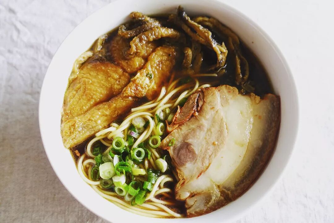 清爽鲜香的酱油汤面,汤里撒上几段韭菜叶,面上盖上现汆烫的鳝丝和腰花,一提,一拌,先吃一口浸满汤汁的鳝丝,再来一口面,吃到最后还得喝一口酱油汤底才算完整。