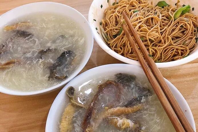 鳝鱼能做菜煮面,自然也是能做汤的,“一面、一包、一汤”的长鱼汤,就是不精致但惊喜的小吃。