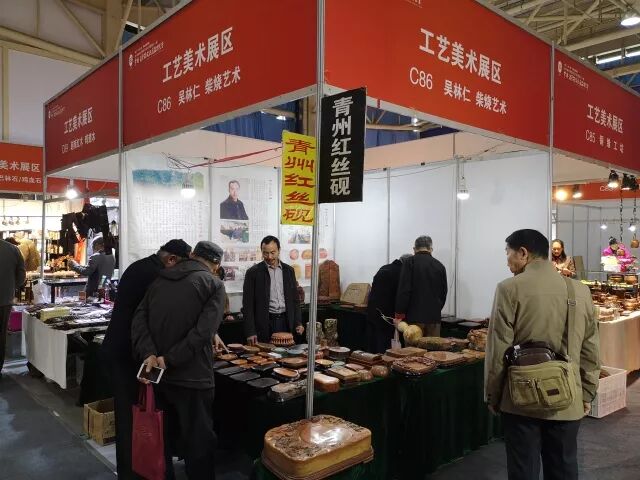 在工艺美术展区,来自全国各地的工艺品琳琅满目,吃的海苔、牛皮糖,喝的茶,玩的各类小玩意,文艺的茶具、宝石,市民在这里都能买到。