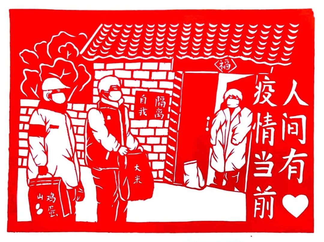 剪纸 《共克时艰》