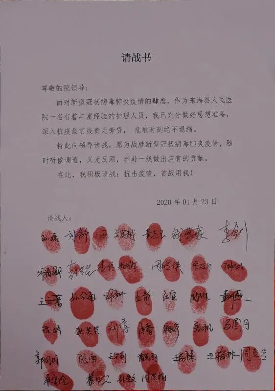 《护士们在请战书上郑重地签上自己的名字》