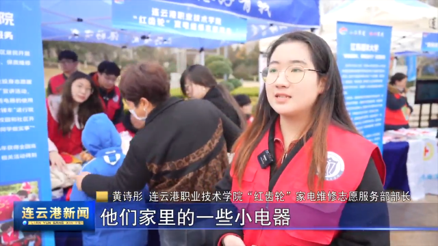 黄诗彤 连云港职业技术学院“红齿轮”家电维修志愿服务部部长:帮助他们维修一些他们家里的一些小电器,做一些我们力所能及的事情,像留守儿童老人宣传一下用电安全,保证他们最基础的用电安全,可以保证自己的安全。