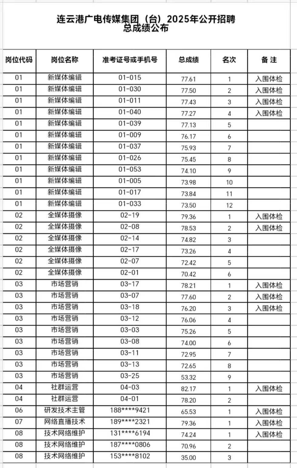 连云港广电传媒集团(台)2025年公开招聘总成绩公布