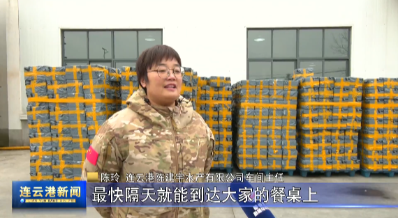 连云港陈建宇水产有限公司车间主任 陈玲谈到,主播是晚上给大家带产品,我们早上开始分类打包。我们的产品主要是以顺丰冷链为主,顺丰公司给我们配车,就是专车专送,然后最快隔天就能到达大家的餐桌上。