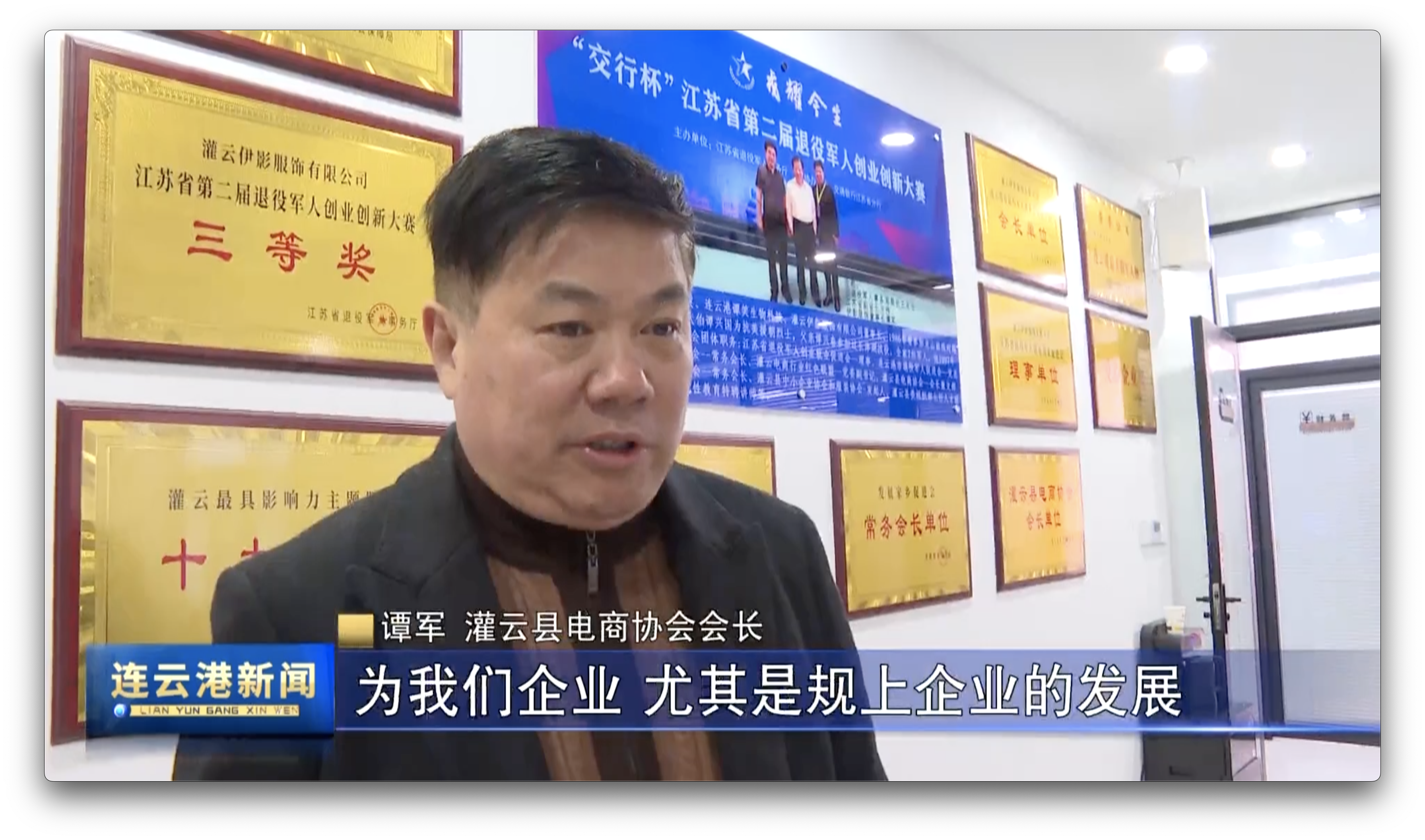 灌云县电商协会会长 谭军说,为我们企业尤其是规上企业的发展做了很大的助力,同时对于一些零散的加工厂,它从货源、供应链以及各个大的平台上面引来了很多的资源。