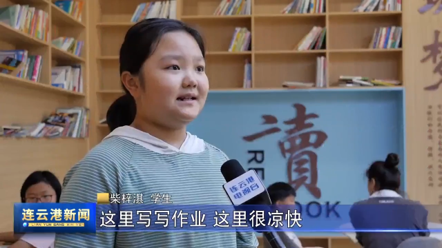 柴梓淇 学生:这里写写作业,这里很凉快。这里有很多的书,还可以看里面的书,让我的暑假生活充满精彩。