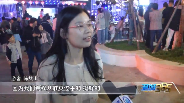 游客 陈女士:感觉这个渔湾风景很漂亮,晚上这个活动也挺好的,因为我们专程从淮安过来的,挺好的,我们住这边,然后明天就走了,挺好的,反正下次还会再来的。